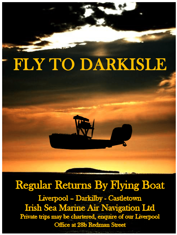 Well, Falls the Darkness has been out for about a month now and has had some very nice reviews. I was planning to take a bit of a break before Book 5… but you know how it is, sometimes the ideas flood in when you least expect them. So, I’m starting to work out the basics of a plot and do some early research. As a possible clue for what the book MIGHT include (but might not!), here’s a poster for a business that starts up in 1924… the march of progress means that Jack might have some faster options for getting to Darkisle!